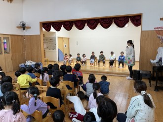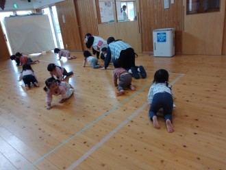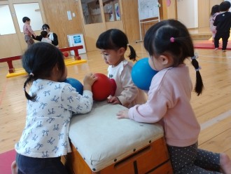 3回目の参加となるお友達でしたが、今回は初めての広いお部屋、お遊戯室で遊んでみました。